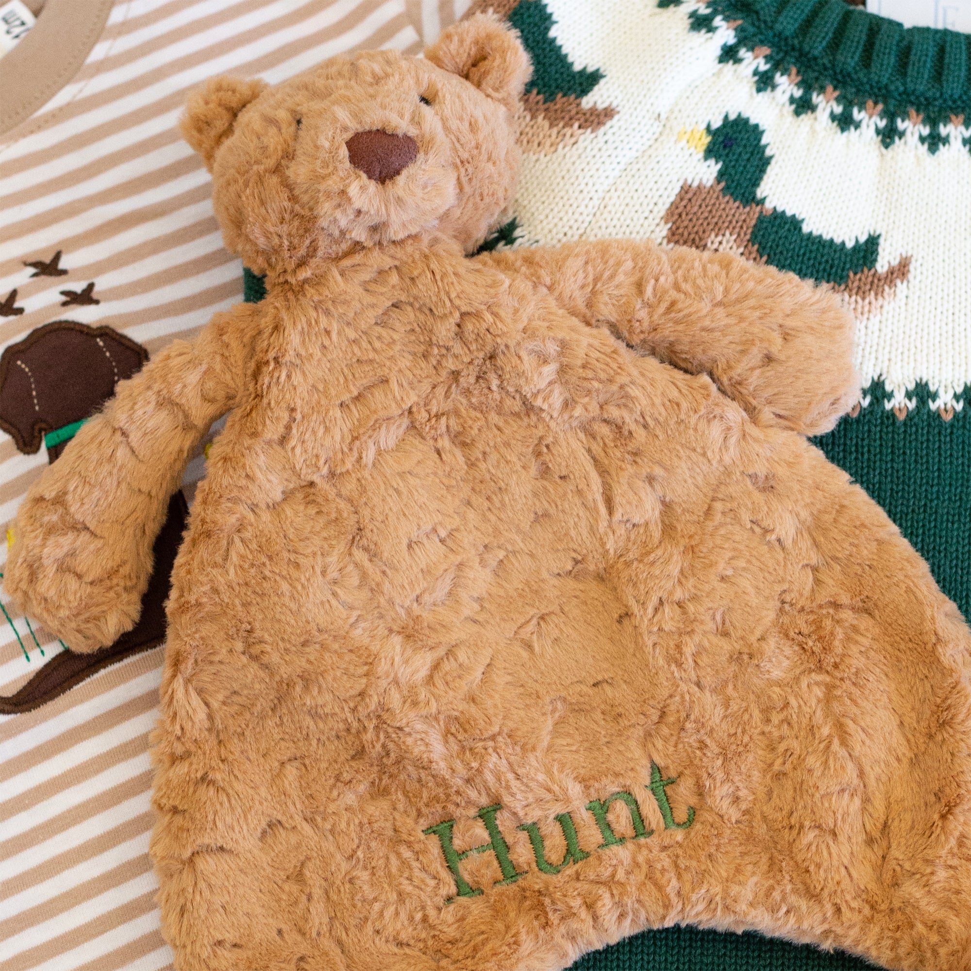 Commemorate special moments with custom embroidery on select items.
